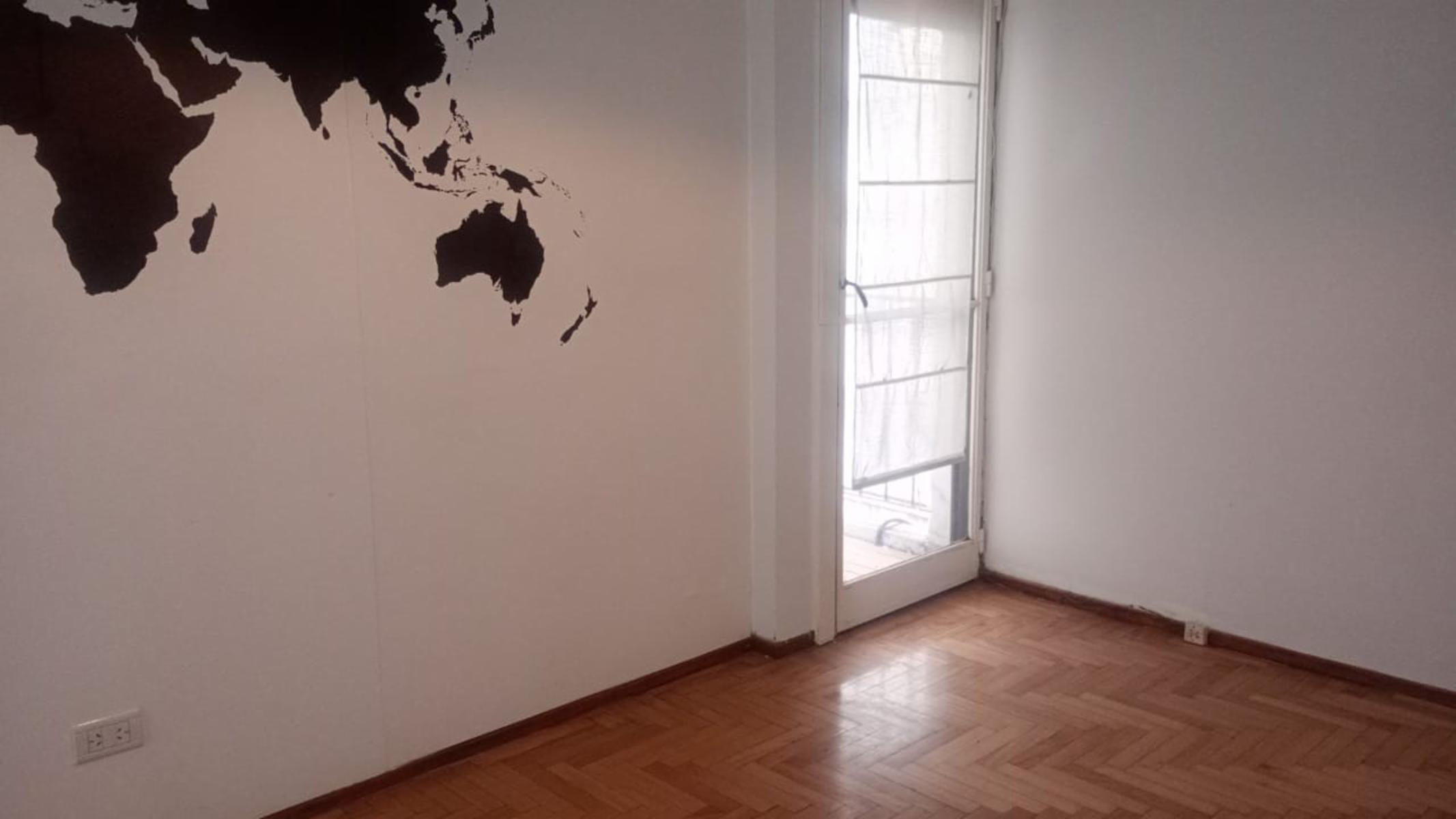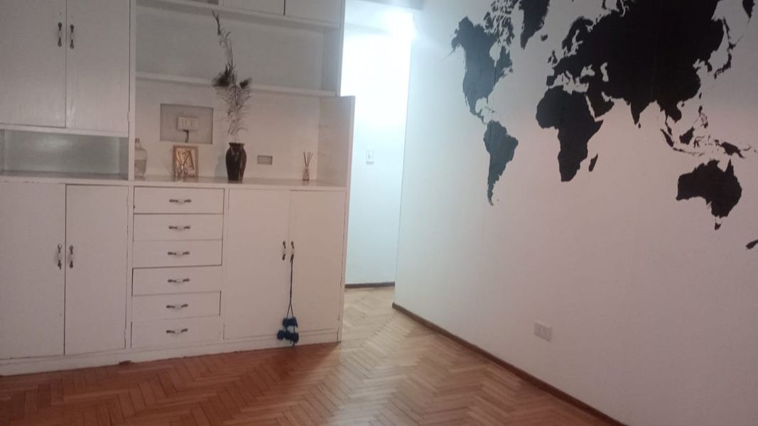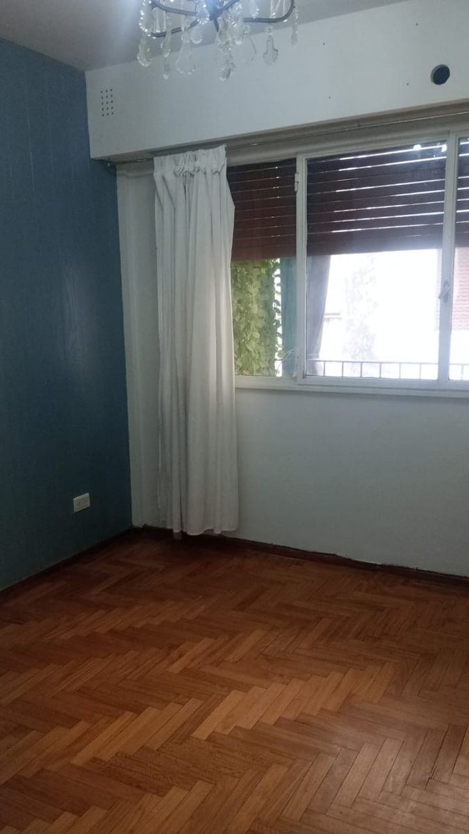 Excelente departamento de dos ambientes cuenta con la siguiente distribución LIVING COMEDOR de 5 x 4 m, con pisos de parquet en excelente estado, lámpara industrial colocada, con mueble en madera 3 largo x 2 m x 0.60 m, para tele y guardado de elementos con varios estantes y varios cajones, desde el living y por medio de una puerta de con cortina enrollable de tela, se accede a BALCÓN de 3 x 1.5 m que cuenta con locker en pared para guardado, COCINA 5 x 4 m con piso en excelente estado diseño venecitas negras, ventana amplia de tres paños de vidrio rebatibles, cocina a gas con válvula de seguridad ESCORIAL, termotanque eléctrico CODINI, y por supuesto a las cenas altas y bajas, también cuenta con instalación para lavarropa, y lugar para la heladera bastante razonable, el DORMITORIO de 5 x 3.5 m también tiene pisos de parquet en excelente estado, y dos placares uno de ellos está empotrado en pared, y el otro no pero tiene muy buena capacidad, atento a que queda bastante lugar para una cama matrimonial, cuenta con ventana al interior del edificio, con persiana levadiza de madera funcionando en perfecto estado, también tiene el barral y la cortina de tela colocada, luminaria estilo francés, y BAÑO de 3 x 2.5 m, completo con inodoro bachalavado espejo y bañera con duchador, también cuenta con un piso similar de la cocina estilo venecitas negras.