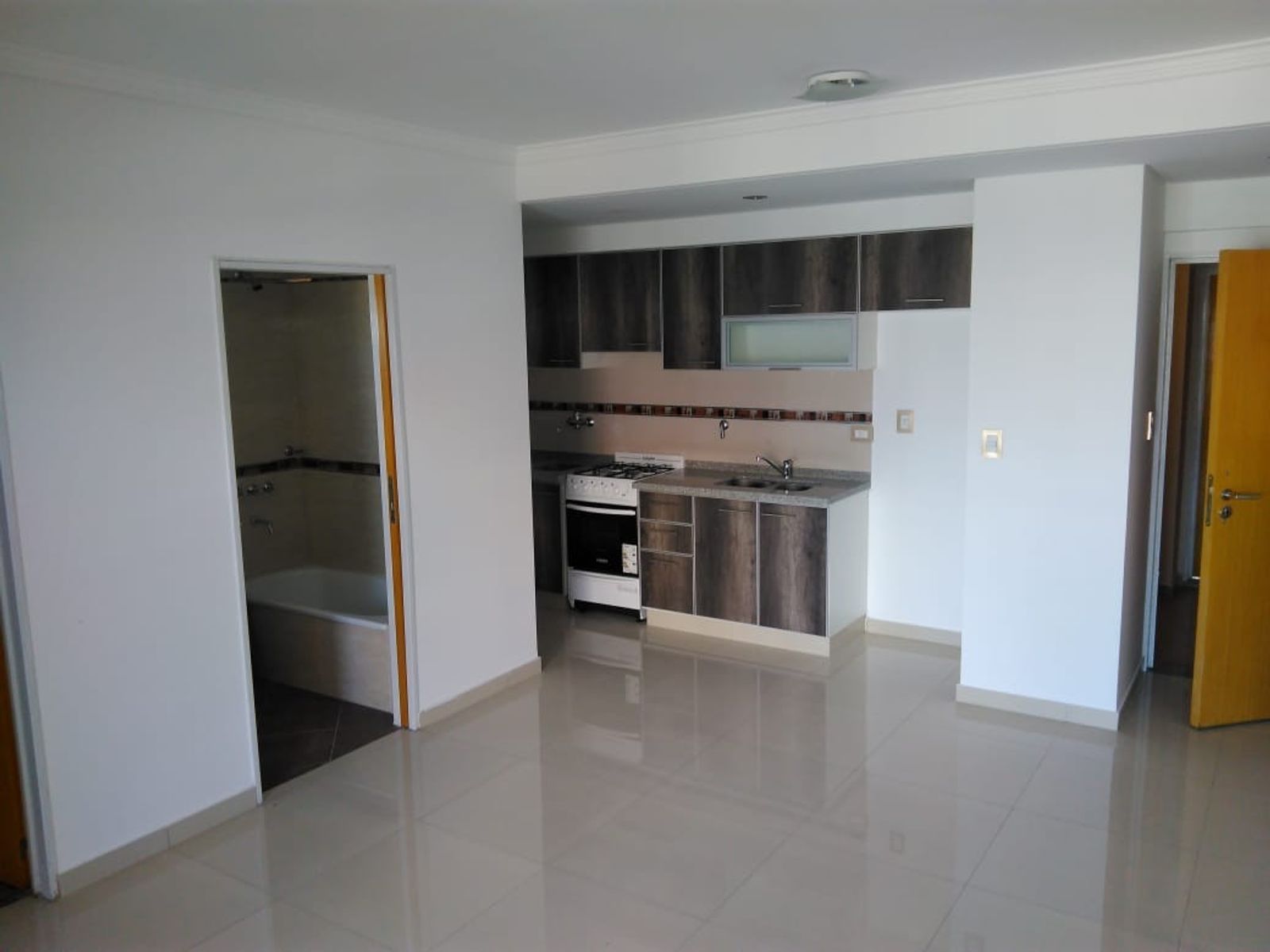 Departamento al frente de aprox. 50 m2 de los cuales 45 m2c y 5 m2d cuenta con la siguiente distribución: Living comedor con cocina integrada con Alacenas Altas y Bajas en melanina y sistema hidráulico, Artefacto de Cocina con horno a gas, purificador/spar, termotanque eléctrico buena capacidad, tambien cuenta con bacha de lavado adicional y descarga de lavarropa, Baño completo, un Dormitorio con placard con interior y Balcon 2,5 x 3,5m.