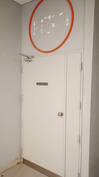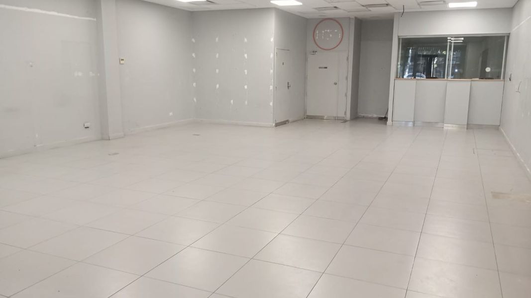 SALÓN RECEPCIÓN 5 x 8 m, qué se para al salón principal por una puerta de tres paños de vidrio con estructura metálica corredizos. También tiene extractor de aire. A su vez cuenta con una persiana ciega levadiza con su respectivo motor, entonces esto permite que el local trabaje las 24 horas comercialmente, ya que el salón comercial principal está separado del salón de recepción, tanto de día en horario comercial como de noche fuera de horario comercial por medio de esta persiana ciega.