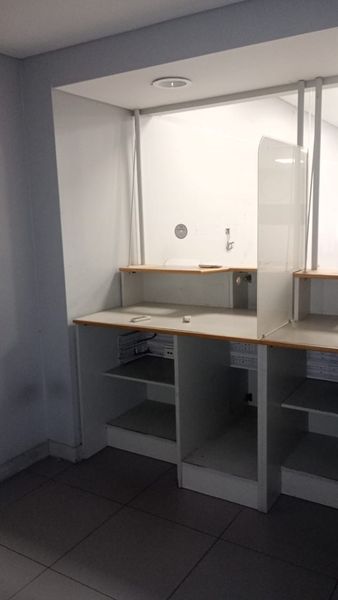 OFICINA 4 x 3 m qué hace de soporte administrativo y comercial al SECTOR DE COBROS 3 x 3 m, que tiene DOS BOX en madera y vidrio con vista al salón, también cuenta con AIRE ACONDICIONADO FRÍO CALOR.