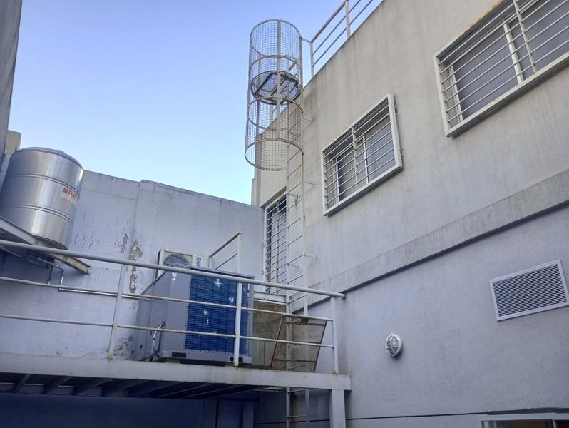 DEPÓSITO de 8,66 x 20 m, rústico con acceso limitado a una escalera de escape que sale desde el patio. Tiene dos ventanas que dan también al patio y podría adecuarse para acceso y guardado de mercadería.