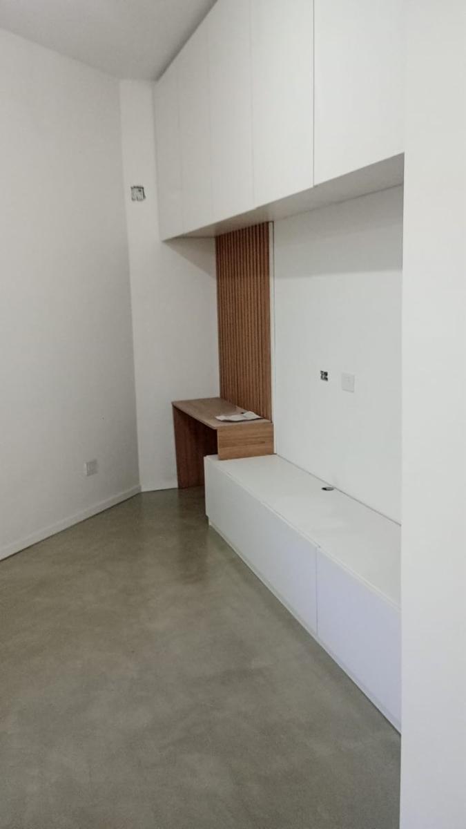 Cuenta con la siguiente distribución: LIVING COCINA COMEDOR INTEGRADA de 5 x 4.5 m, con artefacto de cocina gas, spar purificador, grandes y espaciosas alacenas y bajo mesada, también cuenta con un mueble en madera que haces de escritorio, mueble de tv, racks, y capacidad de carga, todo ello con gran diseño y esmero del carpintero que trabajo a medida en este inmueble, BAÑO de 3 x 2m completo con acertados revestimientos, DORMITORIO de 3.5 x 4 m con gran placar para dos personas, PEQUEÑO PATIO 5 x 2 m, que cuenta con bacha de lavado, descarga de lavarropa, calefón a gas, y escalera de acceso a TERRAZA de 5 x 4 m.