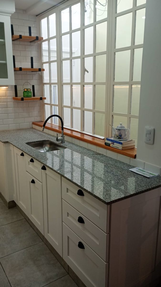Increíble dos ambientes, con ingreso por pasillo y distribuido entre planta baja y primer piso, aplaudimos a los dueños, qué han hecho un trabajo muy bien logrado en la refacción, actualización y distribución de este moderno PH. Pasamos a contarte, cuenta con la siguiente distribución: PATIO de 4 x 2.5 m, con pisos de mosaico estilo retro, pequeña baulera o box para lavarropa, lámpara colgante de último diseño, y cerramiento en vidrio muy bien colocado y rebatible, tablero eléctrico con varias fases (tomas, teclas, instalación A/A, encendido bomba) BAÑO de 2 x 2 m qué mixa un estilo retro y moderno, con inodoro, vanitory, espejo, calefón a gas, ventilación por medio de una ventana con vitrox, LIVING COMEDOR de 4 x 4 m, COCINA de 4 x 3 m, con doble mesada de granito Gris Mara, alacenas altas y bajas, sector para artefacto de cocina, spar purificador, y un ventanal muy bonito hacia el patio, continuando en planta baja tenemos un LIVING COMEDOR de medidas aceptables 4.5 x 4.5 m, de techos altos, luces LED, tomacorrientes por varios lugares y escalera de acceso a primer piso, dónde encontramos el DORMITORIO de 4 x 4 m, con placar, BAÑO completo, con ducha sin bañera, pero con mampara, vanitory y ambos sanitarios y por último una pequeña terracita de 3 m x 3 m.