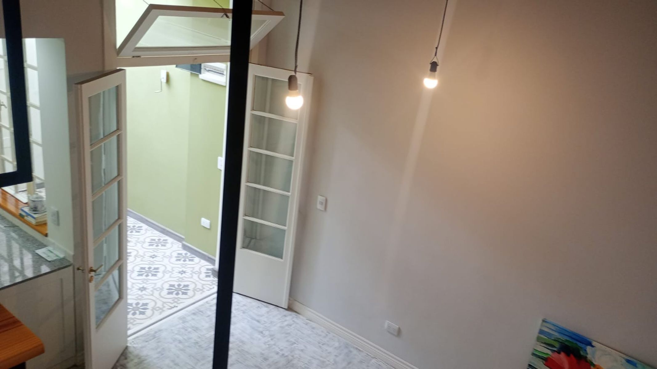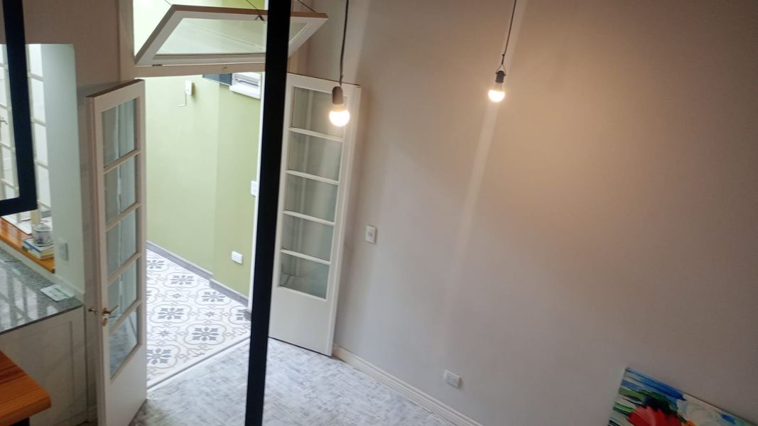Código 114-974 | Increíble dos ambientes, con ingreso por pasillo y distribuido entre planta baja y primer piso, aplaudimos a los dueños, qué han hecho un trabajo muy bien logrado en la refacción, actualización y distribución de este moderno PH. Pasamos a contarte, cuenta con la siguiente distribución: PATIO de 4 x 2.5 m, con pisos de mosaico estilo retro, pequeña baulera o box para lavarropa, lámpara colgante de último diseño, y cerramiento en vidrio muy bien colocado y rebatible, tablero eléctrico con varias fases (tomas, teclas, instalación A/A, encendido bomba) BAÑO de 2 x 2 m qué mixa un estilo retro y moderno, con inodoro, vanitory, espejo, calefón a gas, ventilación por medio de una ventana con vitrox, LIVING COMEDOR de 4 x 4 m, COCINA de 4 x 3 m, con doble mesada de granito Gris Mara, alacenas altas y bajas, sector para artefacto de cocina, spar purificador, y un ventanal muy bonito hacia el patio, continuando en planta baja tenemos un LIVING COMEDOR de medidas aceptables 4.5 x 4.5 m, de techos altos, luces LED, tomacorrientes por varios lugares y escalera de acceso a primer piso, dónde encontramos el DORMITORIO de 4 x 4 m, con placar, BAÑO completo, con ducha sin bañera, pero con mampara, vanitory y ambos sanitarios y por último una pequeña terracita de 3 m x 3 m. Servicios de luz gas agua con instalaciones nuevas y suministros activos. No paga expensas. Superficie total según escritura 28 m2 Superficie total actual 55 m2, siendo superficie cubierta aprox 45 m2 y superficie descubierta aprox 10 m2. Todas las medidas aqui mencionadas son aproximadas y son expresadas para complementar la nocion de las fotos y la descripcion de este inmueble
