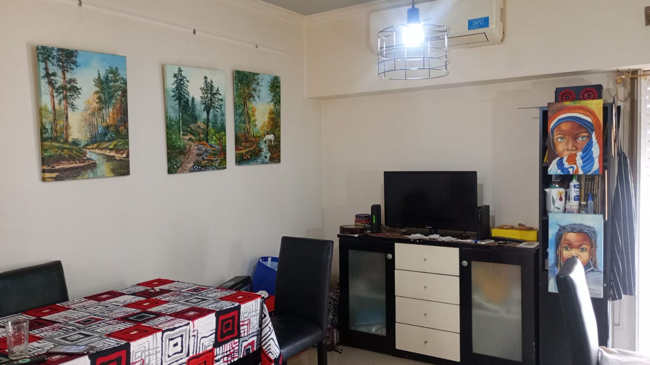 Código 114-985 | Departamento de 3 AMB, ubicado en segundo piso lateral, cuenta con la siguiente distribucion: Comedor de 6m x 4m con piso de porcelanato, Aire Acondicionado Frio/calor Sanyo, Cocina Comedor de 4m x 3m con artefactos de cocina a gas, spar purificador, alacenas altas y bajas, Patio cubierto con cerramiento de poli-carbonato rebatible y Bacha De Lavado con descarga de lavaropa, termotanque a gas de 3m x 1,5m, Dormitorio N1 de 4m x 3m y placard, Dormitorio N2 de 4m x 3m con placard, los 2 con pisos flotantes, Aire acondicionado frio/calor, Baño Completo de 3m x 1m y Terraza de uso comun de 4m x 5m con espacio para lavado y parrilla. Cuenta con Baulera propia de aprox 1 m x 1 m. Todas las medidas aqui mencionadas son aproximadas y son expresadas para complementar la nocion de las fotos y la descripcion de este inmueble