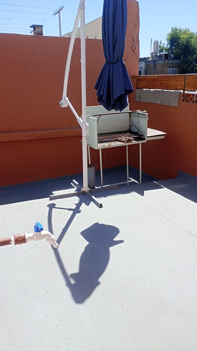 Accediendo desde cualquiera de los dos patios, tanto el primer patio que es cubierto, como el segundo patio que es descubierto, nos encontramos con la UNIDAD COMPLEMENTARIA "I", que se encuentra distribuida de la siguiente manera: PATIO 4.5 m x 3.5 m, DORMITORIO 5 x 3 m, con placard, y HALL de distribución de 5 x 2 m.